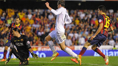 ريال مدريد غاريث بيل، الذي قاد فريقه للفوز على برشلونة في نهائي كأس ملك إسبانيا،