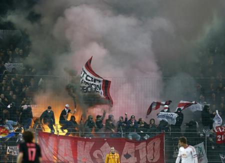 نصف ساعة بعد إلقاء ألعاب نارية في ملعب روتردام مما تسبب في إشعال لوحة إعلان.