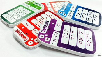 بالهاتف ليكون النص المكتوب على المفاتيح بارزًا يمكن لمن يقرأون بهذه الطريقة قراءته"،